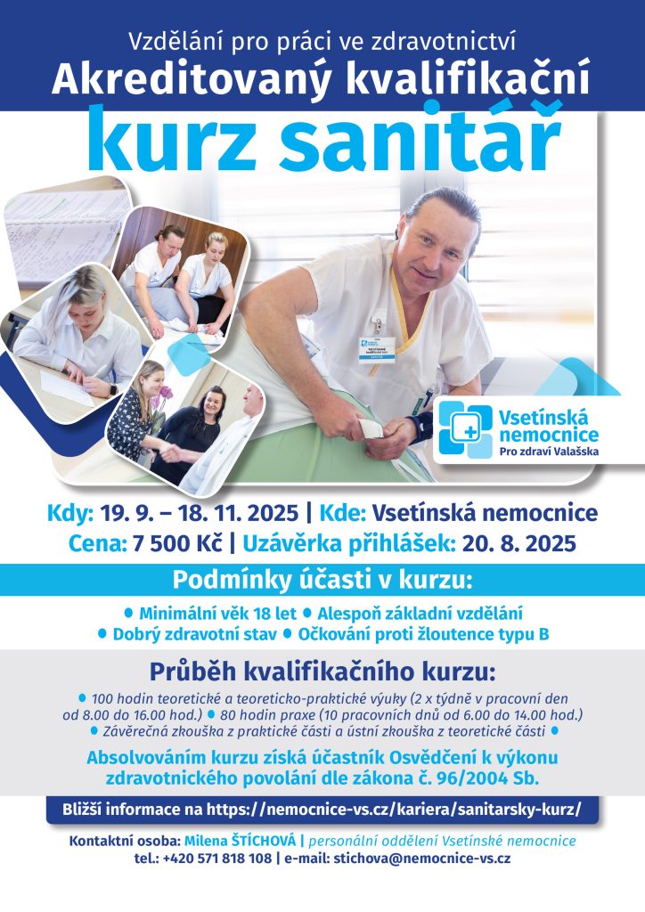 Přemýšlíte o změně profese? O možnosti uplatnění ve zdravotnictví? Připravujeme další akreditovaný kvalifikační KURZ SANITÁŘ.