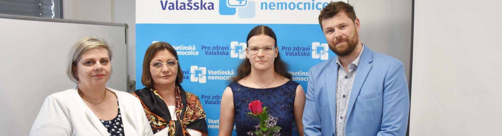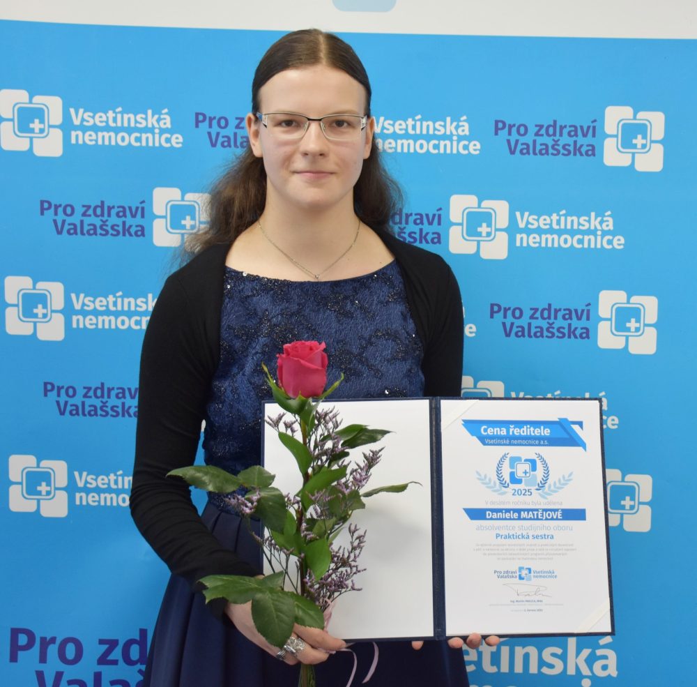 Speciální ocenění, které zohledňuje působení studentů v době nemocniční praxe i další aktivity nad rámec studia, bylo uděleno již podesáté. Cenu ředitele Vsetínské nemocnice převzala Daniela MATĚJOVÁ, úspěšná absolventka oboru Praktická sestra na vsetínské střední zdravotnické škole (MG, SZŠ a VOŠZ Vsetín).