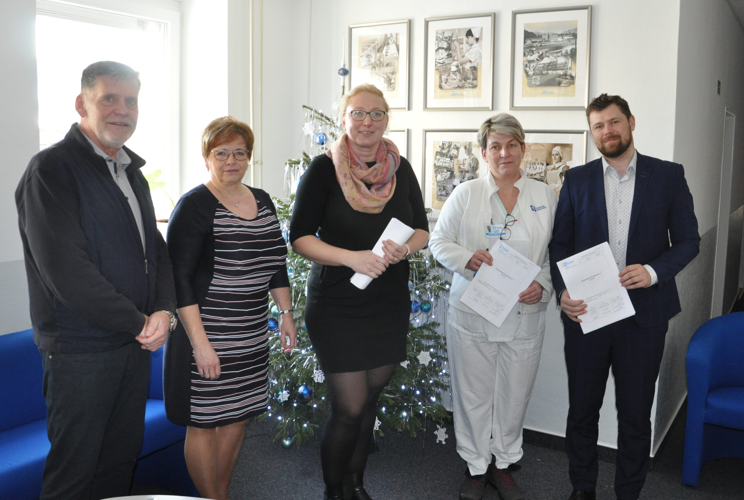 Za Profesní odborovou unii zdravotnických pracovníků (POUZP) v naší nemocnici jednala Lucie Kotrlová, DiS. a za Odborový svaz zdravotnictví a sociální péče (OSZSP ČR) Romana Mucsková. „S platností od prvního ledna se navyšují základní tarify všem zaměstnancům o šest procent. Rovněž se navyšují příplatky za práci ve dvousměnném a vícesměnném pracovním režimu u dělníků a nelékařského zdravotnického personálu pod odborným dohledem,“ informoval předseda představenstva. Ve dvousměnném provozu se jedná o navýšení z 600 na 1000 Kč, u vícesměnného a nepřetržitého pracovního režimu z 3000 na 4000 Kč.