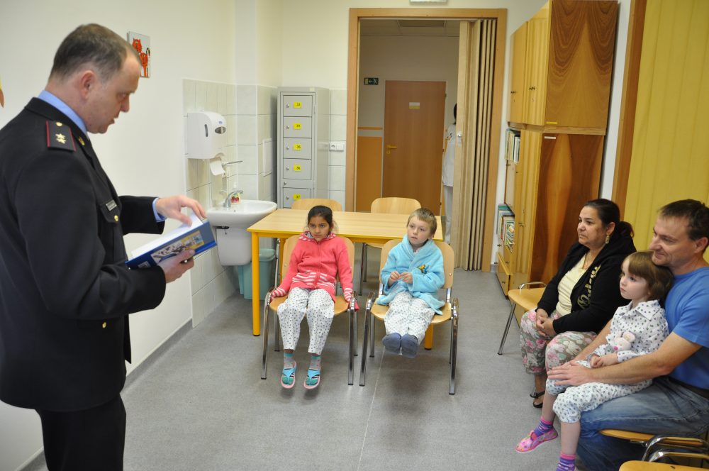 S napětím naslouchali pacienti dětského oddělení Vsetínské nemocnice příběhu o mladém policistovi Honzíkovi, který obětavě pomohl se záchranou topícího se dítěte. Z knížky Policejní pohádky předčítal malým pacientům policejní mluvčí por. Bc. Vladislav Malcharczik, dětem předal omalovánky navazující na knihu a další drobné dárky.
