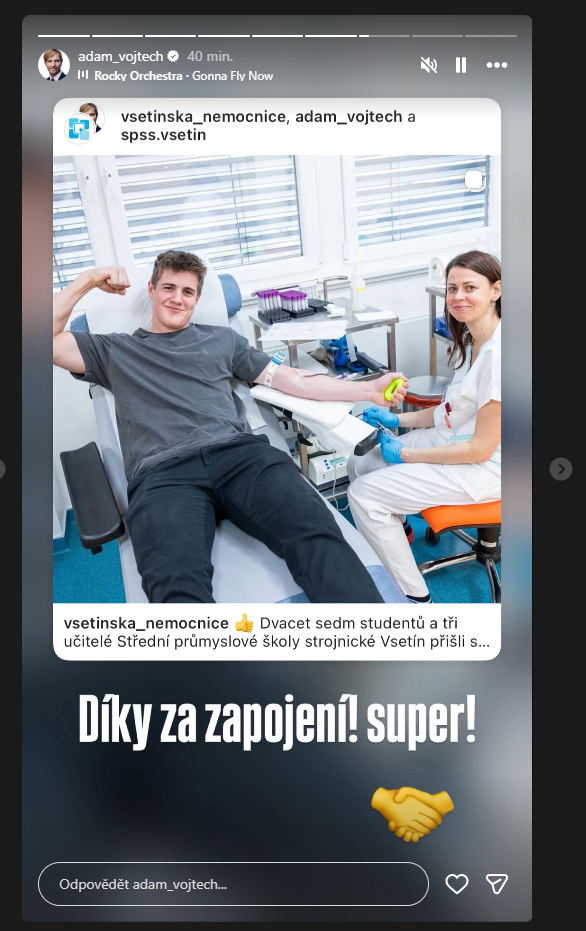 Instagramovou verzi sdílel ministr zdravotnictví Adam Vojtěch s poděkováním: