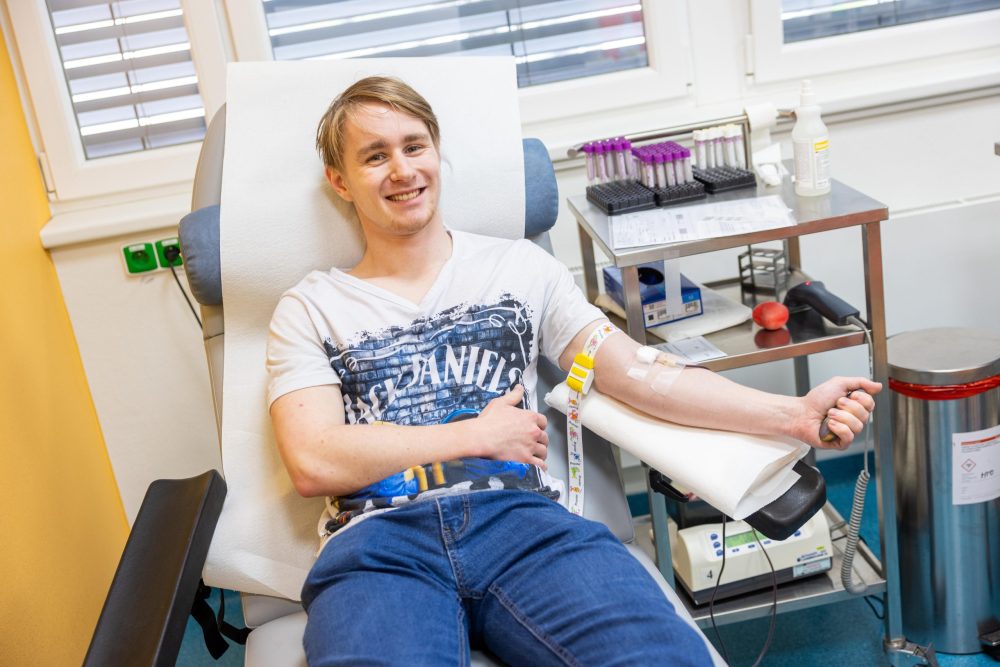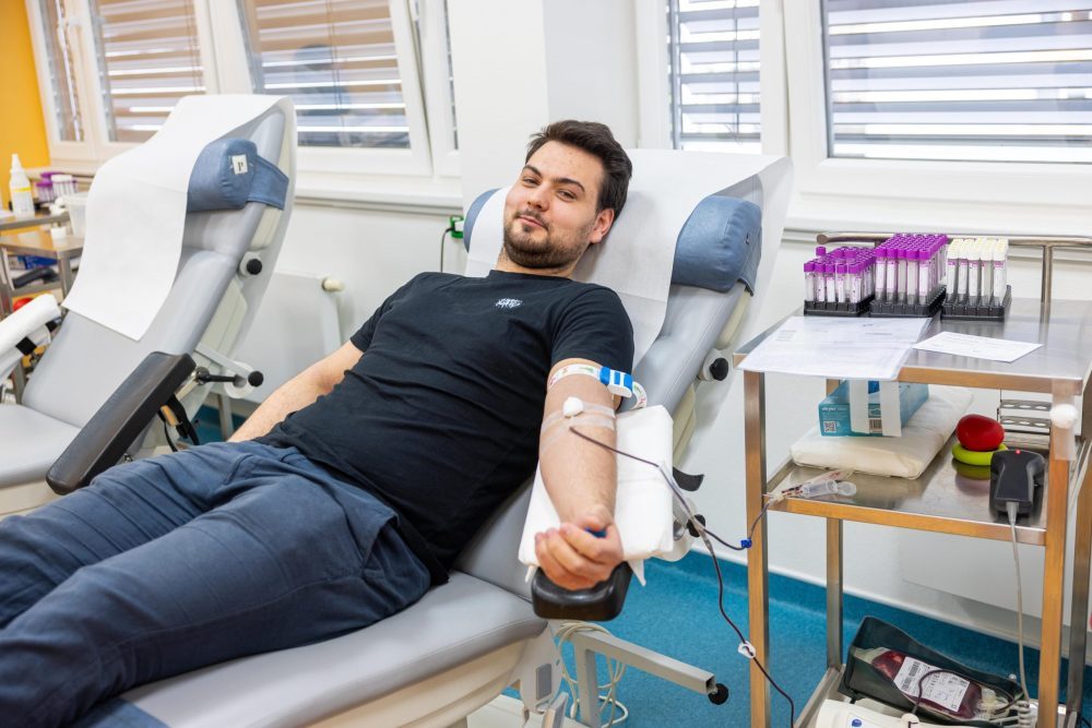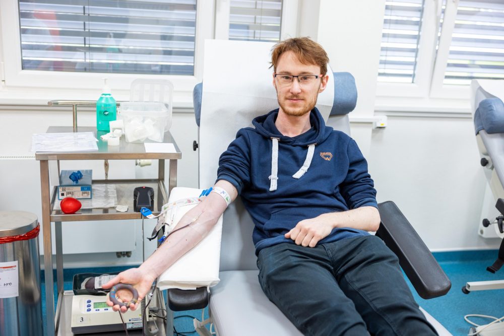 Na hematologické a transfuzní oddělení zavítala početná skupina tří desítek studentů a tří vyučujících ze Střední průmyslové školy strojnické Vsetín, aby společně darovali krev. A byl mezi nimi také letošní 1000. dárce krve – maturant David Čech. „Je to milá náhodička. Přišel jsem darovat krev podruhé, poprvé to také bylo s průmyslovkou. Uděláme něco pro dobrou věc, zkontrolujeme zdravotní stav,“ komentoval s úsměvem jubilejní dárce, který obdržel sladkou drobnost. Mezi dárci byl také pedagog Erik Solař, který připomenul, že tradice darování trvá na průmyslovce od roku 2011. „Zpočátku jsme chodili darovat jednou ročně, posledních šest let se snažíme chodit dvakrát, kromě covidových let, které to zkomplikovaly. S první výzvou přišli kdysi tělocvikáři a motivovali studenty, dnes už se zájemci sami ptají, kdy bude zase darování,“ vysvětlil Erik Solař. Děkujeme průmyslovákům a jejich učitelům za velký kus práce pro dobrou věc, za pomoc při záchraně lidských životů a zdraví.