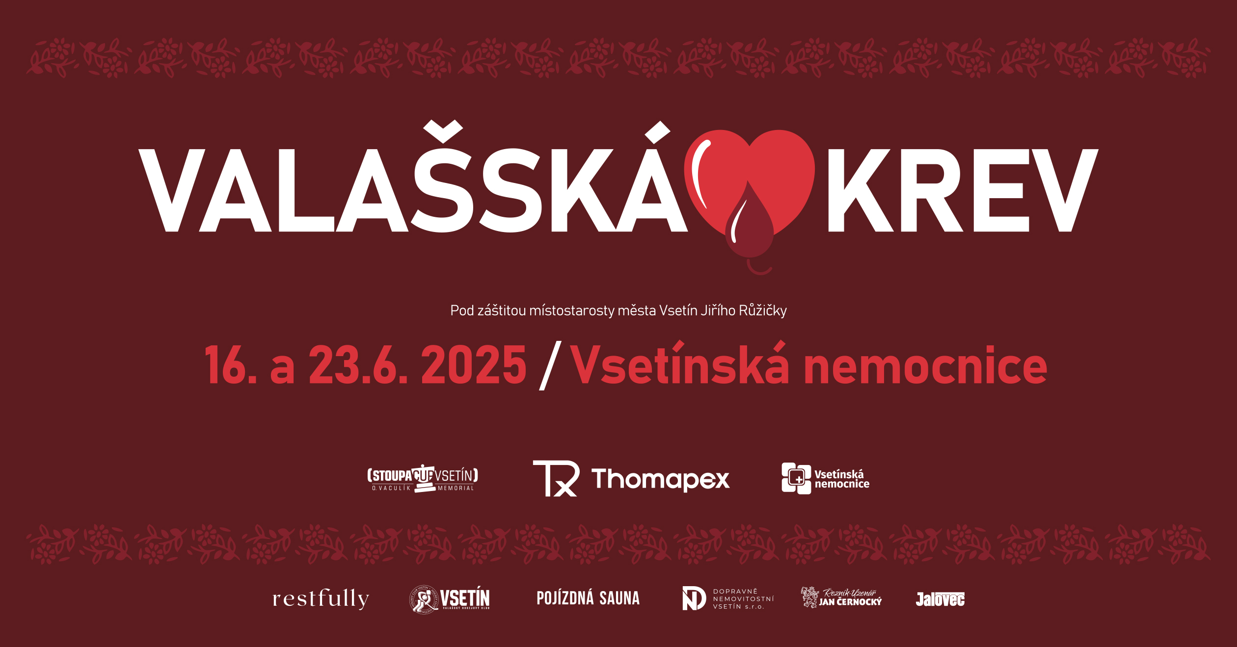 Zvýšený počet nehod a úrazů, ale také dovolené a cestování, které dárce vyřazuje často na několik týdnů z dárcovství. To jsou nejčastější důvody, proč v létě nemocnicím často chybí krev. Nadšenci z Valašska proto připravili dárcovskou akci právě před začátkem prázdnin. Kampaň nazvaná VALAŠSKÁ KREV se uskuteční 16. a 23. června 2025 na hematologickém a transfuzním oddělení Vsetínské nemocnice.
