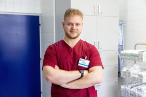 Medik Matej Varga byl v rámci Klinické stáže Premium na chirurgickém oddělení. „Stáž byla velmi dobrá, přístup přátelský, hodně možností vyzkoušet si postupy, celkově velmi pozitivní zkušenost. Všichni byli velmi otevření, dávali mi možnost zapojit se do fungování ambulance, vyzkoušet si vyšetření, zapsat do dokumentace, samozřejmě vše pod dohledem a kontrolou sloužícího lékaře. Byl jsem tu jen na dva dny, ošetřoval jsem a převazoval rány, vytahoval stehy, u jednoho pacienta po úraze jsem dostal příležitost zpracovat anamnézu, lékař vše zkontroloval, odeslal pacienta na další vyšetření. Velmi se mi líbila i konzultace případů, kdy jsme probírali rentgeny, hovořili o diagnostice a možnostech léčby,“ reagoval student pátého ročníku.