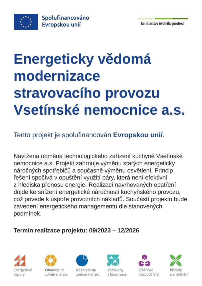 | Název projektu: | Energeticky vědomá modernizace stravovacího provozu Vsetínské nemocnice a.s. |